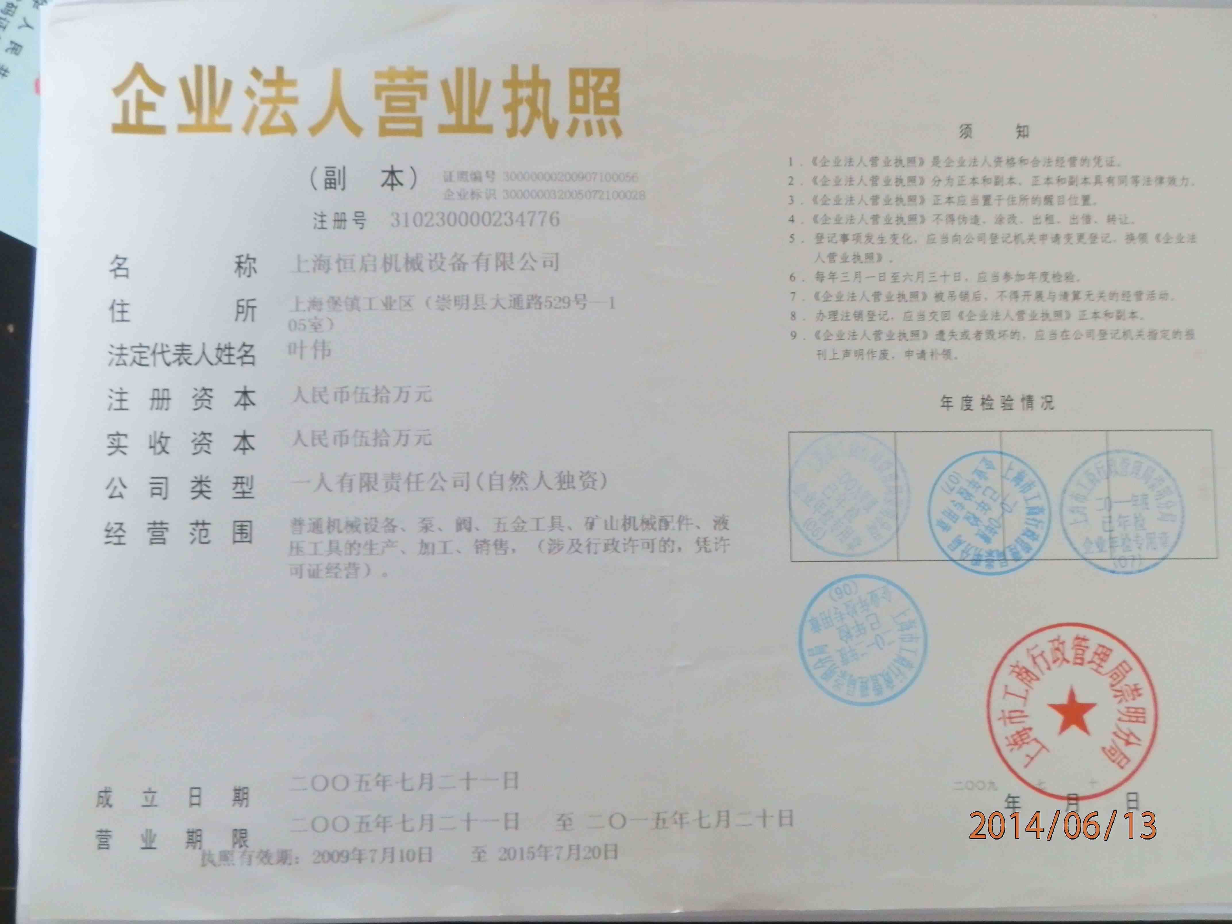 About us上海恒啟機械有限公司注冊成立于2000年,至今已有15年之久。期間不斷生產(chǎn)制造且經(jīng)營供應(yīng)手動試壓泵、電動打壓泵、電動試壓泵、彎管機(手動和電動)、液壓沖孔(手動和電動)、切斷、彎排機、超高壓油泵(手動和電動)以及礦山機、千斤頂、沖孔機、咬口機等,是一家中國大陸企業(yè)。